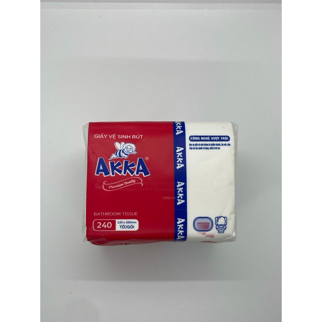 Giấy vệ sinh Akka giấy rút tờ dập xốp 240 tờ siêu dai 4 lớp siêu tiện dụng gói 300g 1. Thông tin sản phẩm - Thương hiệu: Akka - Nguyên liệu: 100% bột gỗ