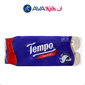 Giấy vệ sinh cao cấp Tempo dạng cuộn với 4 lớp, không mùi, giấy mềm mịn, thấm hút tốt. Được sản xuất theo công tiên tiến, nguyên liệu tự nhiên đạt chuẩn Châu Âu không