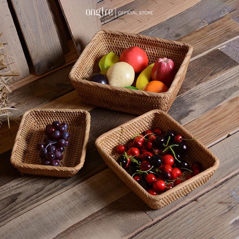 Mua tại TiktokGiỏ mây ONGTRE hình chữ nhật đáy vát đựng hoa quả, bánh kẹo