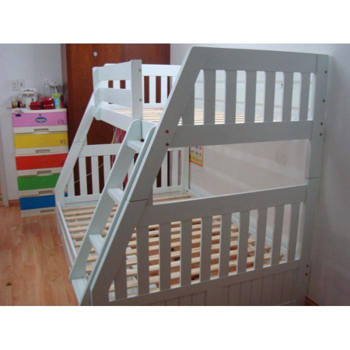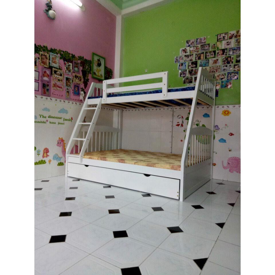 + Chất liệu: Khung giường gỗ thông Newzealand, phân tầng, Vách, đáy hộc gỗ công nghiệp, thang giường MDF chịu lực + Kích thước: kích thước phủ bì, tầng trên ưới 1mx2m Giường tầng hộp