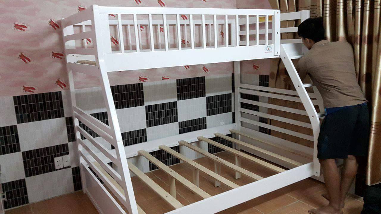 + Chất liệu: Khung giường gỗ thông Newzealand, phân tầng, Vách, đáy hộc gỗ công nghiệp, thang giường MDF chịu lực + Kích thước: kích thước phủ bì, tầng trên ưới 1mx2m Giường tầng hộp