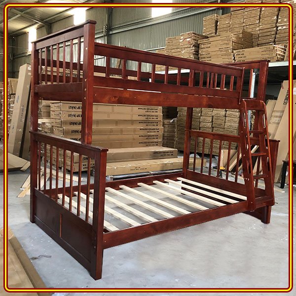 Giường tầng xuất khẩu Derby có kích thước lọt lòng giường trên/dưới là 100x193 cm / 120 x 193 cm, phủ bì 206x128x178 cm. Khoảng cách giữa 2 tầng là 98 cm, cầu thang có