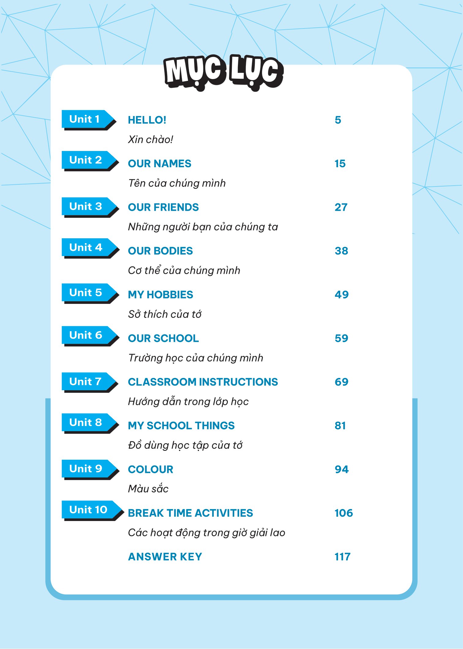 Bộ sách biên soạn thành 2 tập, mỗi tập gồm 15 chủ đề từ vựng. Bài học có hệ thống từ vựng - cấu trúc và bài tập thực hành đa dạng. Cung cấp phương