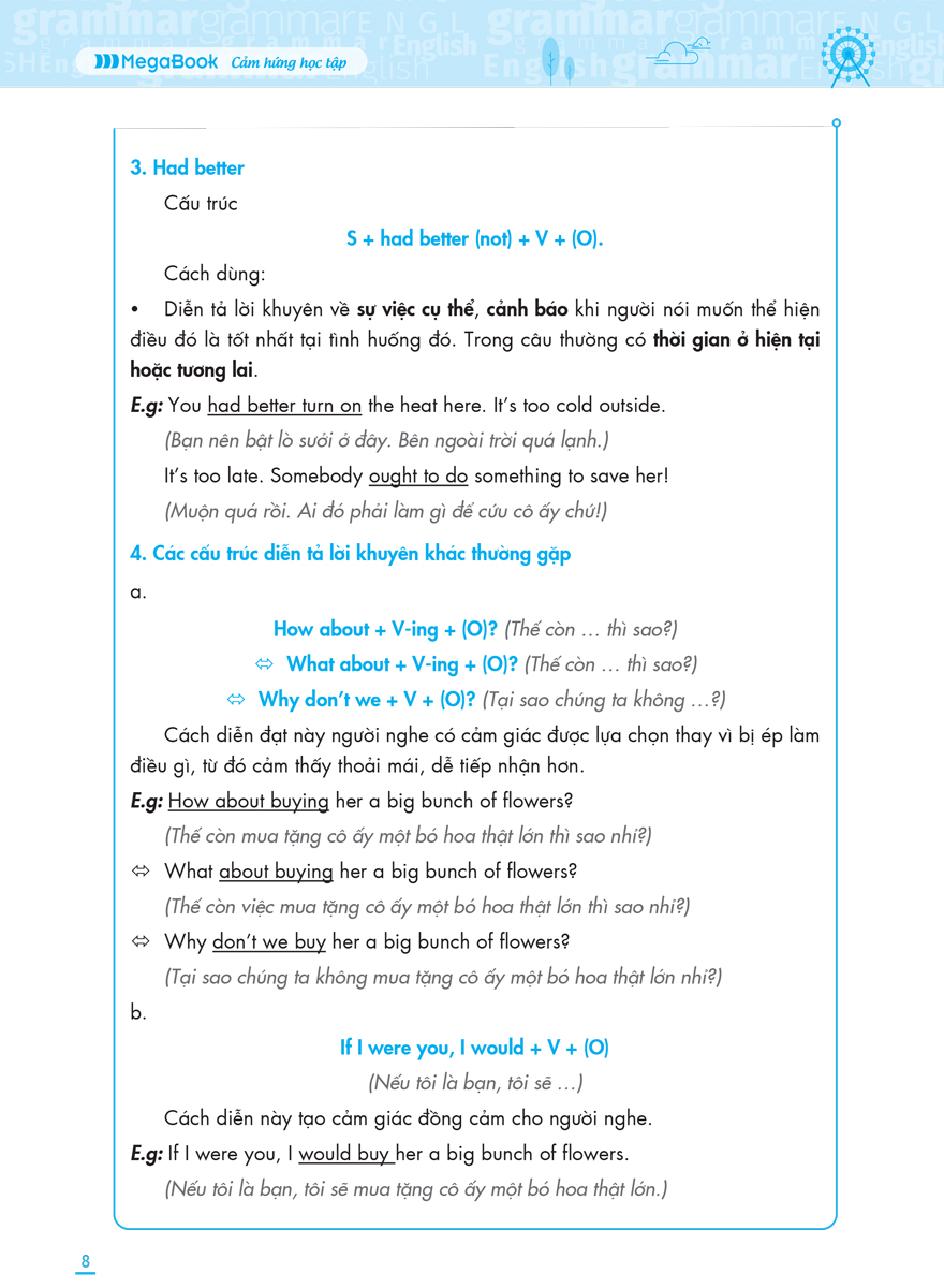 "Mindmap English Grammar - Ngữ Pháp Tiếng Anh Bằng Sơ Đồ Tư Duy" tổng những cấu trúc ngữ pháp căn bản nhất bằng những sơ đồ tư duy sinh động, hình ảnh minh họa đầy