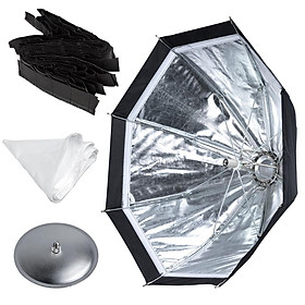 This softbox is 80cm / 31.5in in diameter. Features: 80cm / 31.5in in diameter, inside with reflect silver. Ultimate soften light stream and remove shadow to make perfect shooting. High quality flash cloth, minimize light
