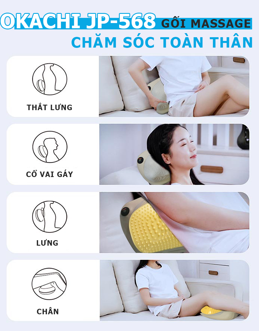 Gối massage OKACHI JP-568E (PIN SẠC) | Đau vai cổ lưng là chuyện nhỏ