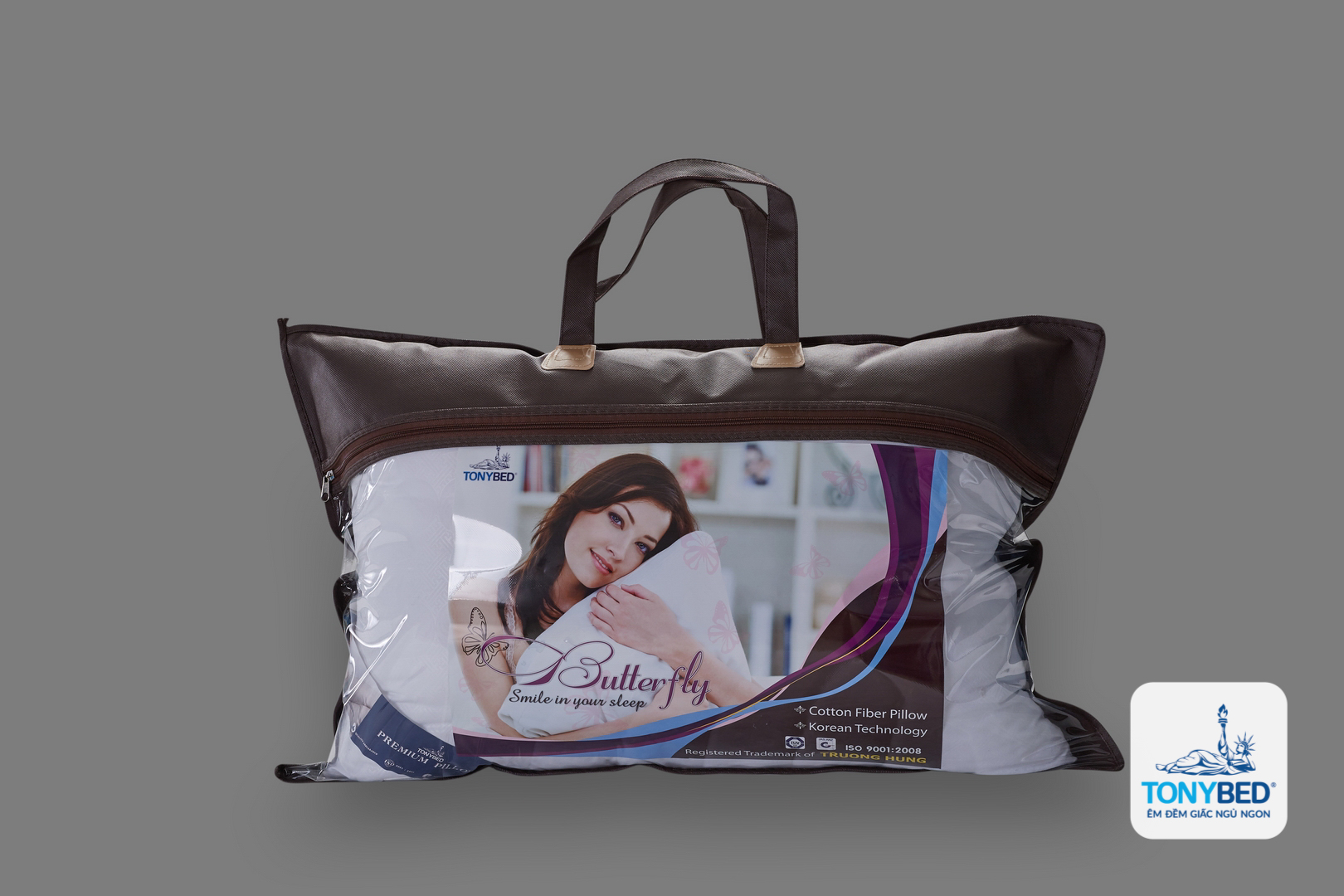 Gối Butterfly Được làm từ gòn bông bi cao cấp gồm những hạt gòn nhỏ, trò, có kích thước ngang nhau cùng với dây chuyền, máy móc hiện đại tạo nên những sản phẩm gối