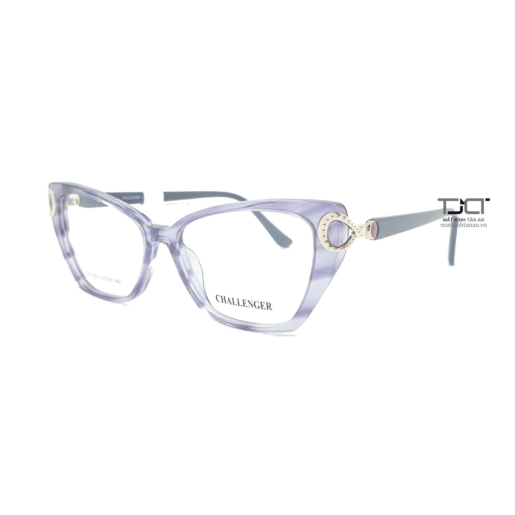 - Thương hiệu : Challenger CA3004-C3 - Size gọng: 53-15-142mm - Màu gọng: Tím - Kiểu dáng: Với thiết kế mang xu hướng Hàn quốc , phom tròng mắt mèo thơi trang. hiện đại cá