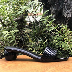 - Dép nữ cao gót quai ngang một bản TRường Hải màu đen gót vuông 8cm da mềm DN139 thiết kế với kiểu dáng ôm chân, thon gọn, thoải mái di chuyển mà không lo