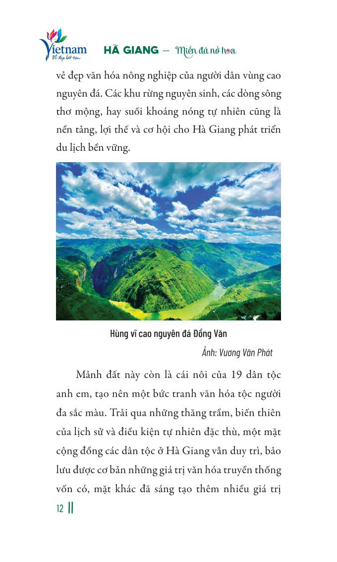 Mua tại TiktokCuốn sách Hà Giang - Miền đá nở hoa thể hiện tâm huyết của nhóm tác giả trên hành trình khám phá mảnh đất này để lý giải một cách dung dị những câu hỏi như: Tại sao giữa mênh mông đá xám, Hà Giang lại bung tỏa bức tranh đa sắc về lịch sử, văn hóa, ẩm thực độc đáo như vậy; tại sao ở nơi lạnh giá mà tình người luôn ấm nồng và tràn đầy đến thế… Với những nghiên cứu, đặc tả sâu sắc, những ký sự, trải nghiệm chân thực và những bức ảnh minh họa sinh động, nhóm tác giả đã lần lượt tìm ra câu trả lời qua từng bài viết trong cuốn sách.