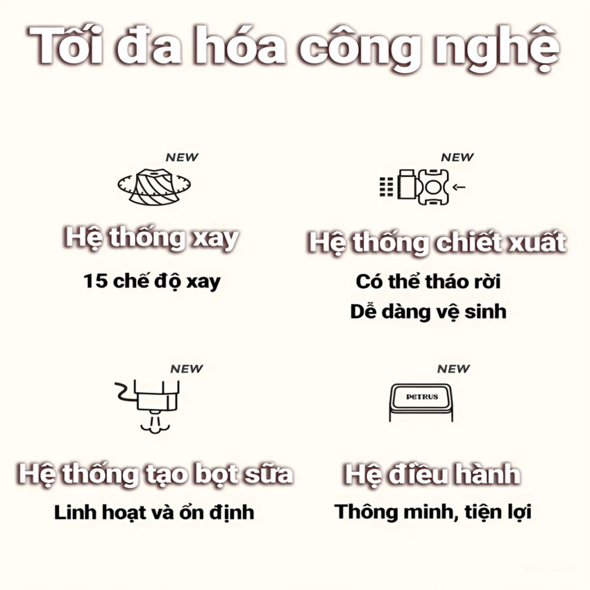 - Tích hợp 15 chế độ xay