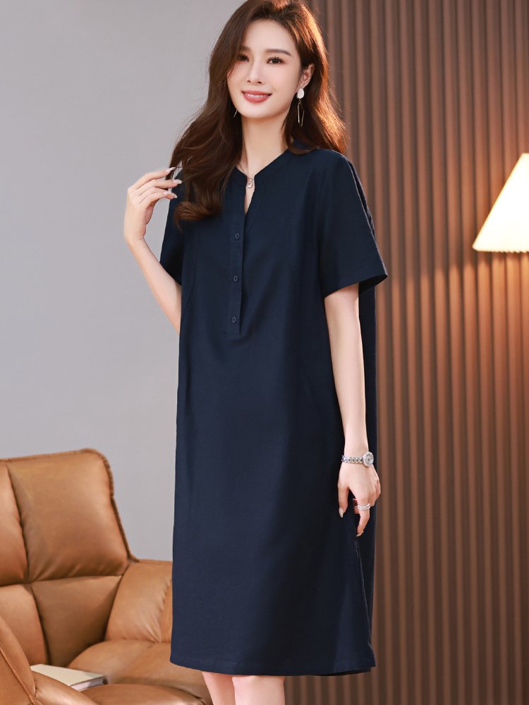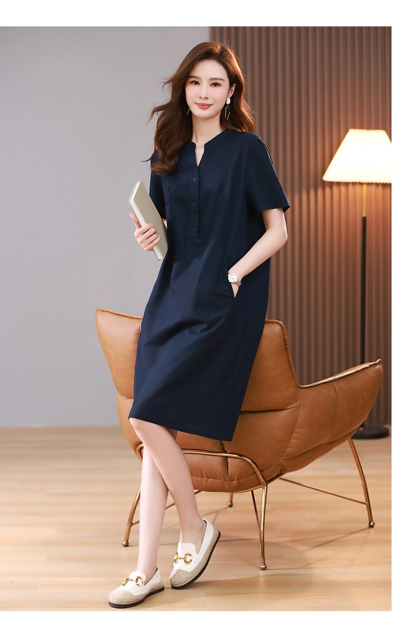 ღ THÔNG TIN SẢN PHẨM:   Tên sản phẩm: Đầm sơ mi xanh navy   Chất liệu: Chất gân ý   Chi tiết sản phẩm: không lót, không túi   Thông số size: S, M, L,