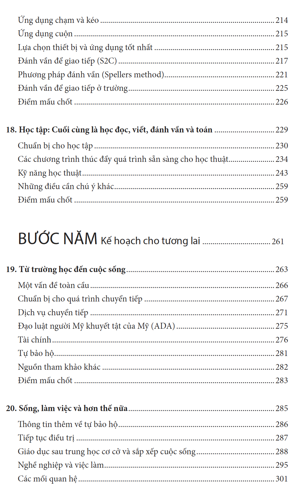 Bước 5: Kế hoạch cho tương lai, tác giả đề cập nhiều mô hình chuyển tiếp cho người tự kỷ trưởng thành sau khi rời trường học.