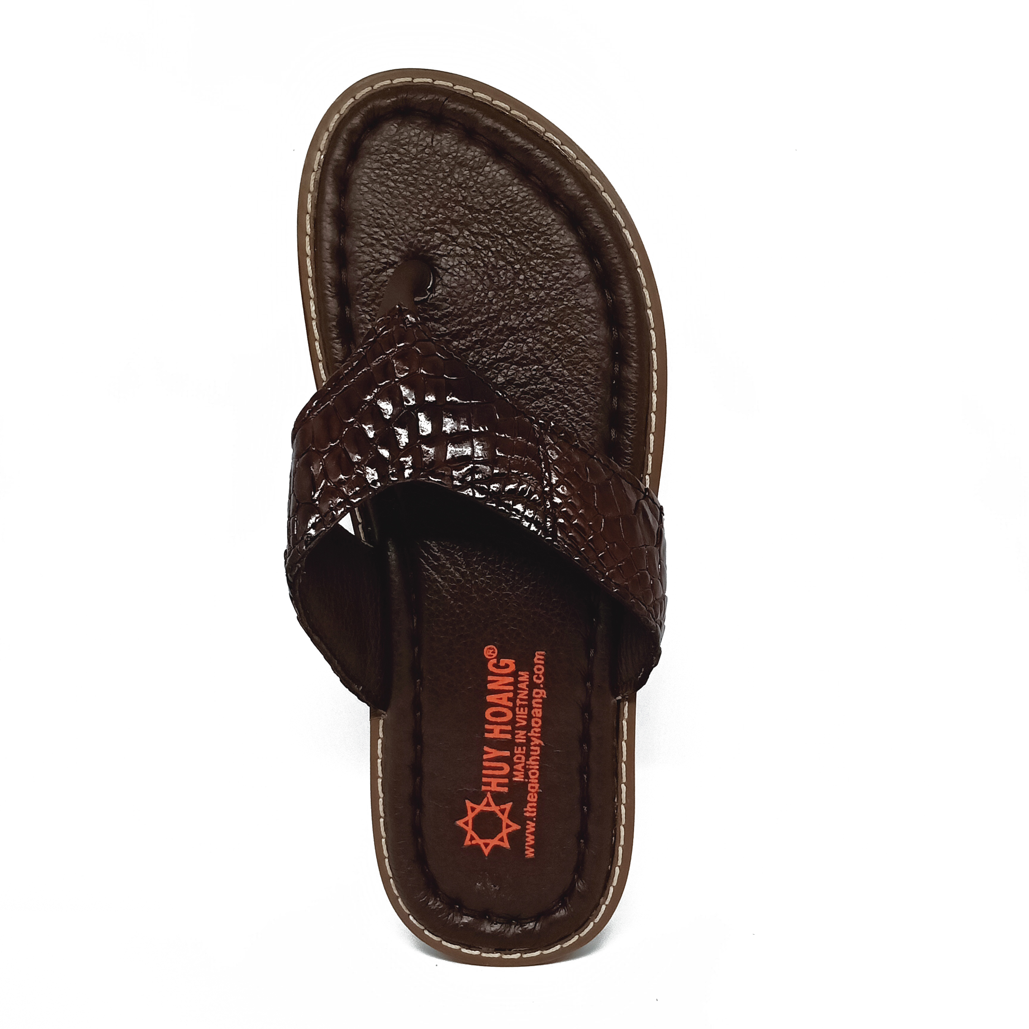 Dép rọ nam Huy Hoàng da bò quai ngang màu nâu 7777