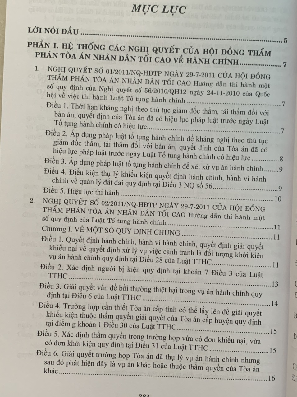 Phần I. Hệ thống các Nghị quyết của Hội đồng Thẩm phán Tòa án nhân dân tối cao về hành chính