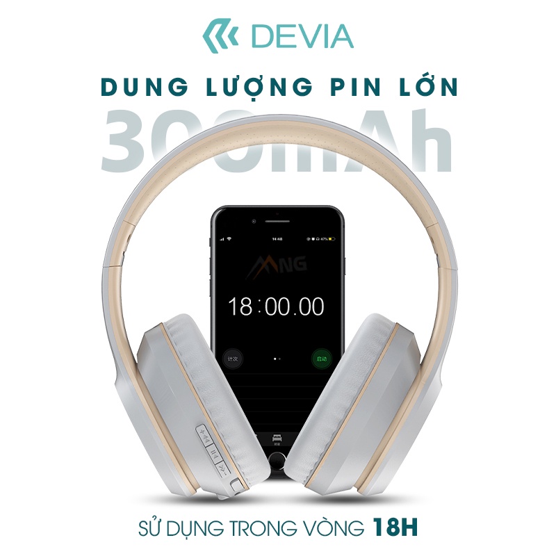 - Sản phẩm Head phone, tai nghe Bluetooth không dây chụp tai DEVIA là sản phẩm chính hãng, thiết kế công thái học ôm trọn tai người nghe một cách êm ái nhất.