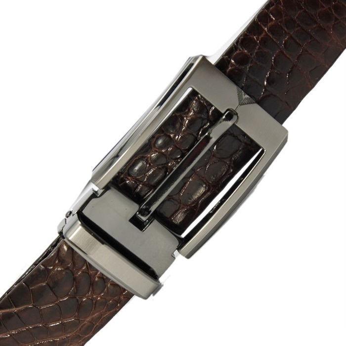 Dây nịt da cá sấu nguyên con màu nâu đen