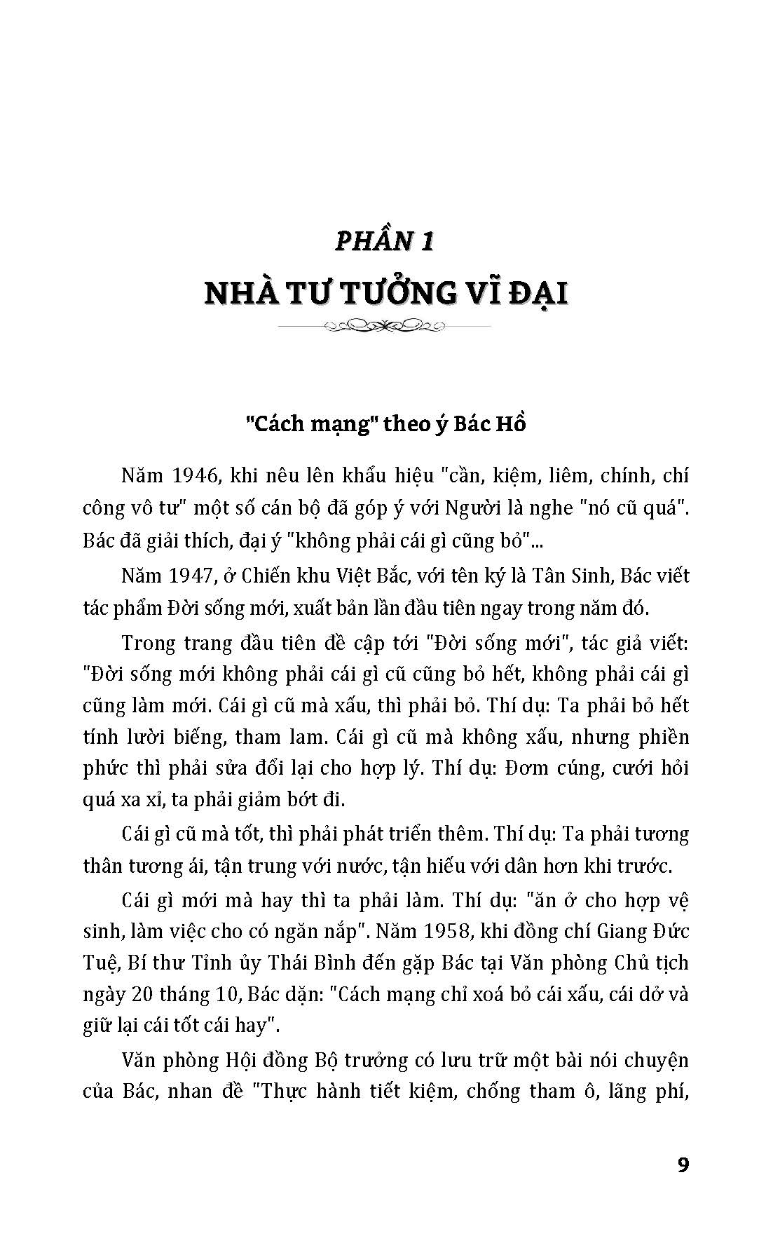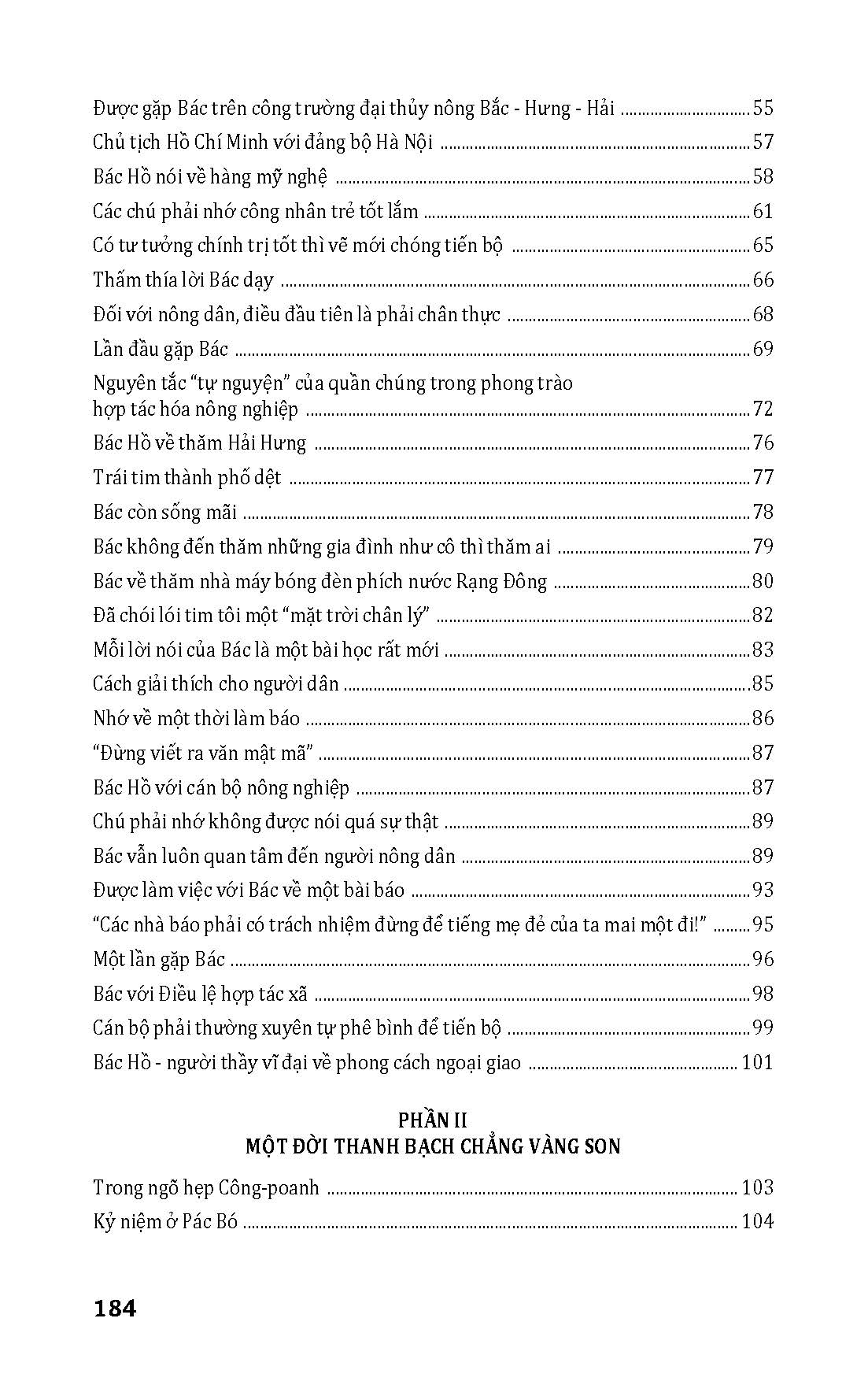 Sách nói về vị lãnh tụ kính yêu của dân tộc dưới góc nhìn gần gũi, thân thương. Mặc dù bám theo trình tự biên niên, sách vẫn cố gắng tổ chức theo các lĩnh