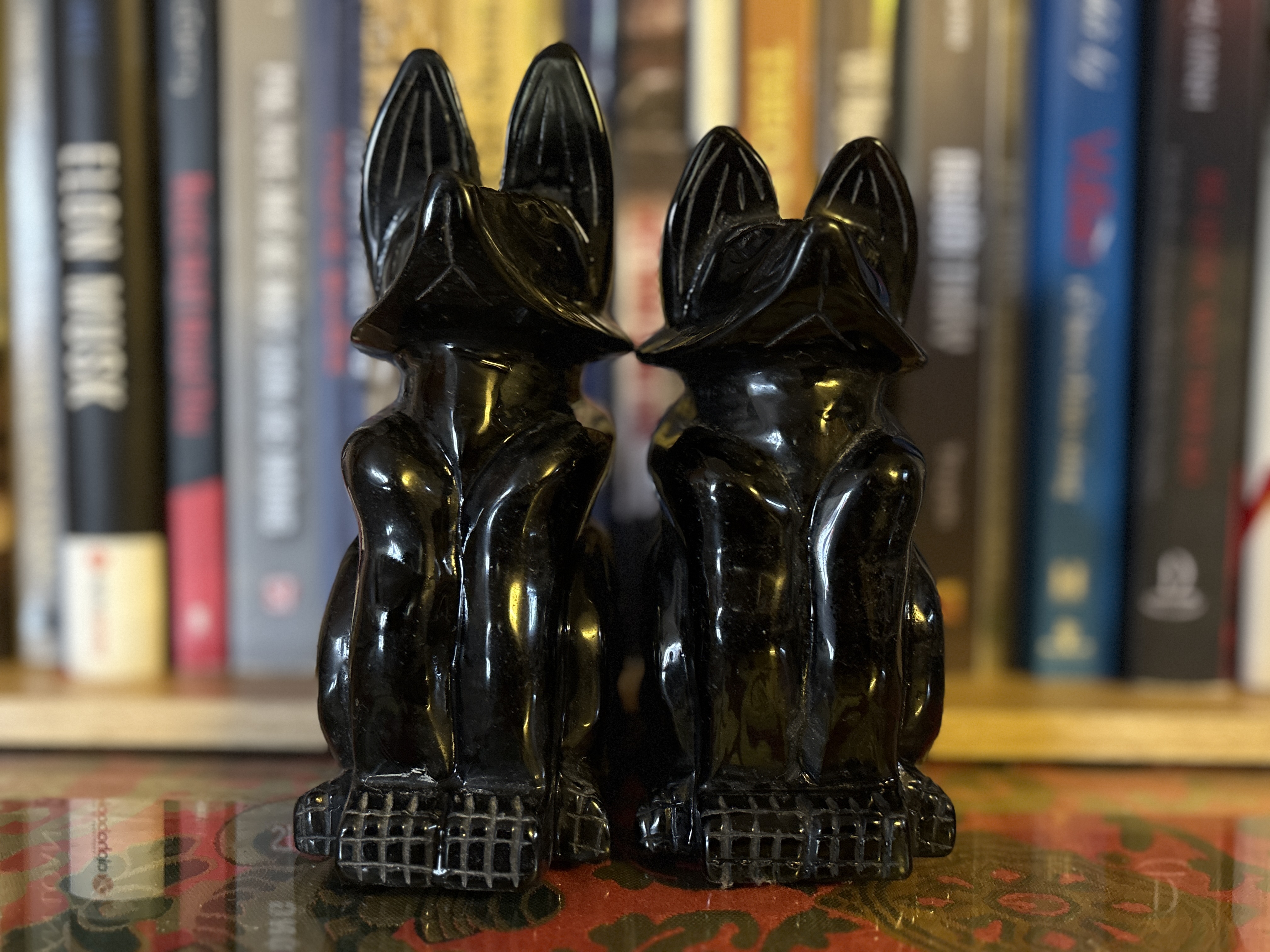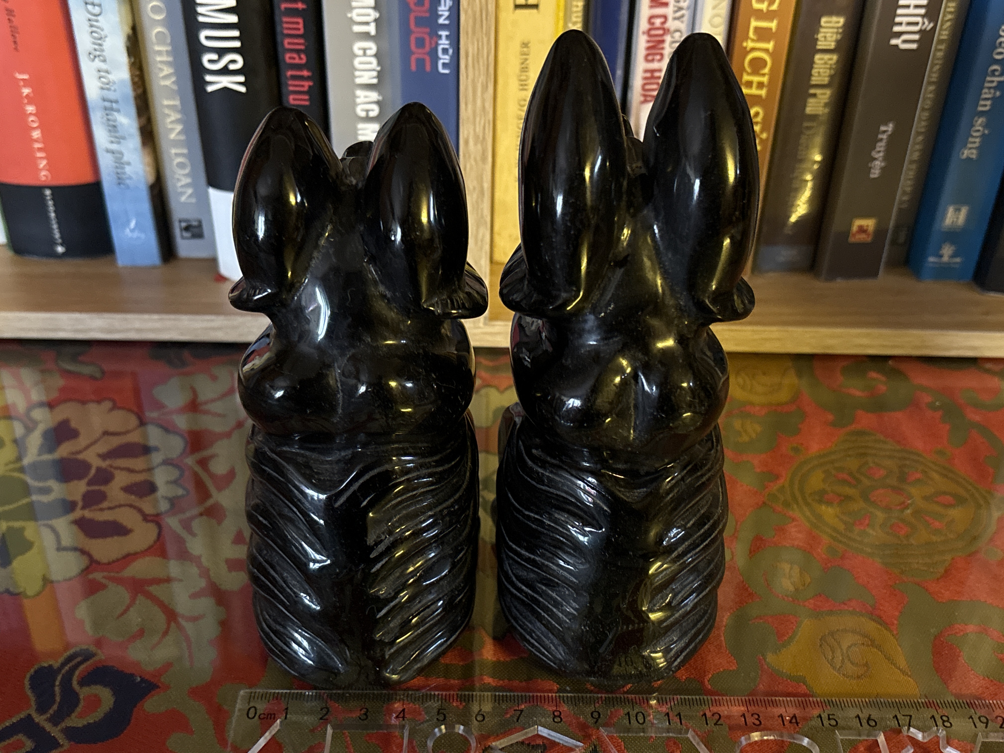 Tượng Hồ ly 9 đuôi chạm khắc tinh sảo bằng đá tự nhiên Obsidian. Kích thước 14cm và 16cm Hồ ly phong thủy - biểu tượng may mắn trong tình yêu Tượng