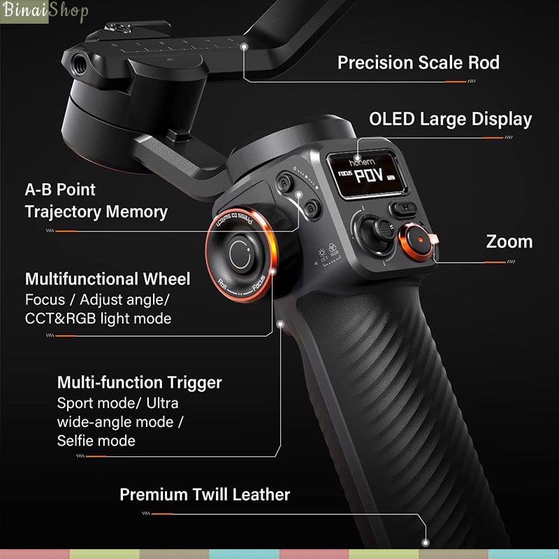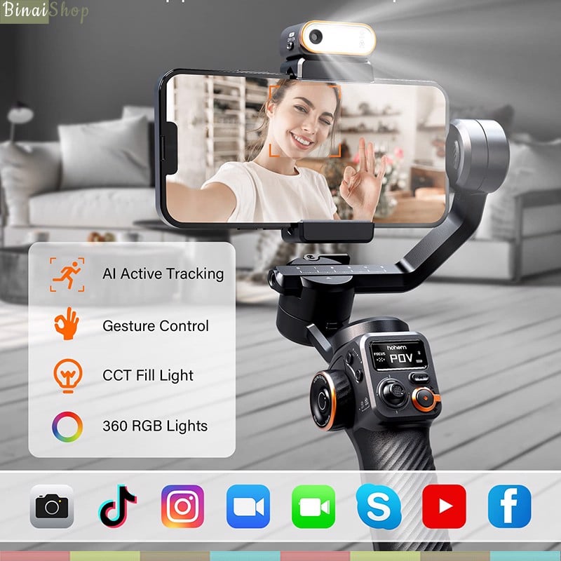 - Gimbal chống rung cho điện thoại Hohem Isteady V3 sử dụng dụng thuật toán iSteady 8.0 mạnh mẽ, tích hợp cảm biến AI điều khiển bằng cử chỉ, thân gimbal kéo dài và bộ điều khiển