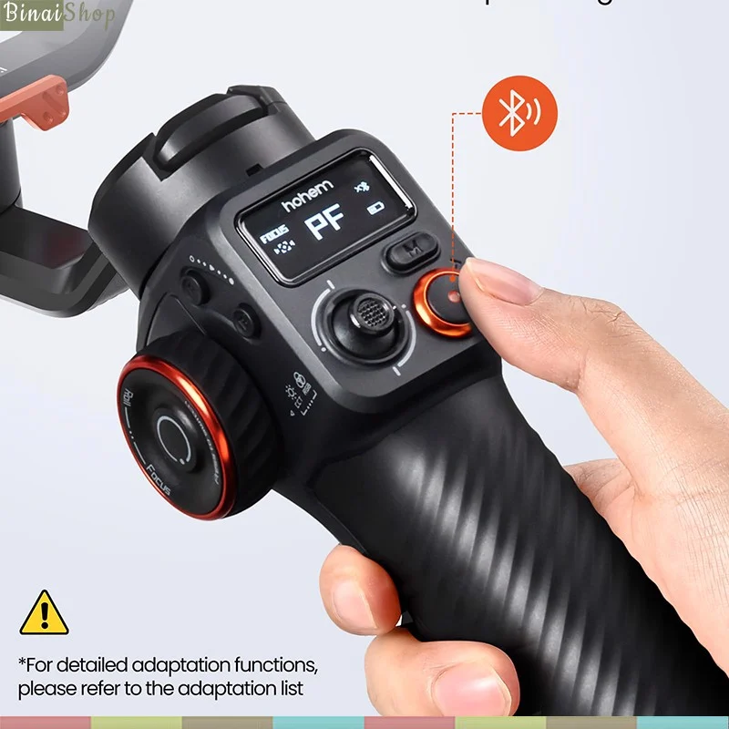 - Màn hình OLED hiển thị hầu hết tất cả trạng thái của gimbal, thuận tiện kiểm tra các thông số khác nhau của gimbal, trạng thái Bluetooth, mức pin, chế độ gimbal...