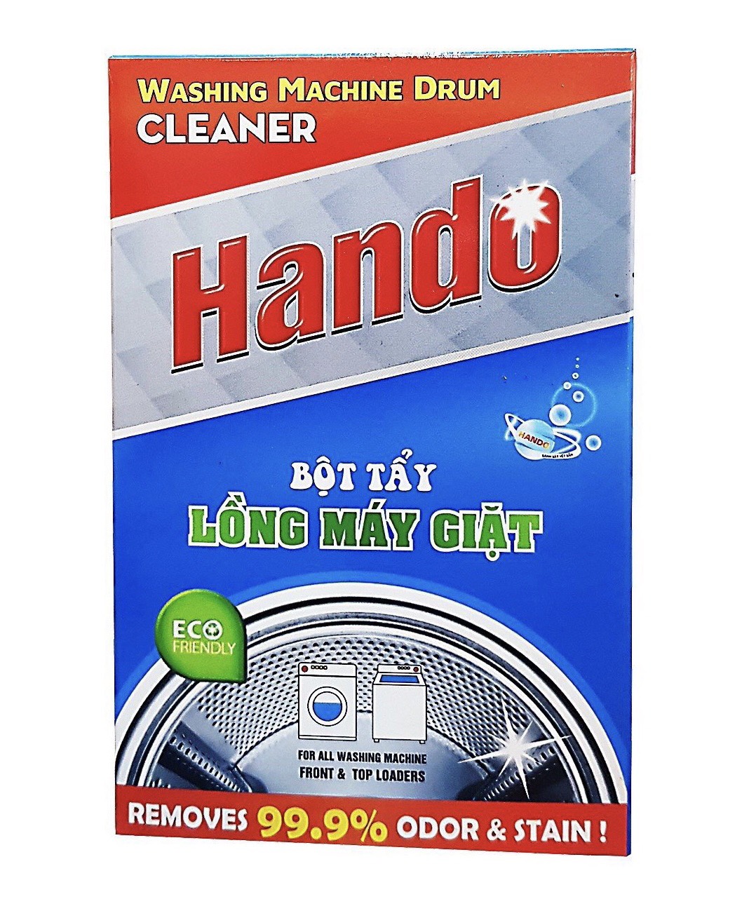 Thông tin sản phẩmTên sản phẩm : Tẩy lồng máy giặt HandoHướng dẫn sử dụng : Cho 2 đến 3 gói nhỏ bột vào lượng nước khoảng 1/6 thùng giặt, sau đó ngâm 4 đến