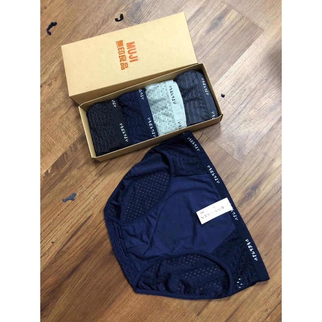 Hộp 5 quần lót nam tam giác Muji nhật lưới, Quần Sịp/quần xì Nam thông hơi thoáng khí kháng khuẩn Xuất Nhật Size: XL (47-58kg), XXL (58-68kg), XXXL (68-80kg) Chất liệu coton lụa cao cấp