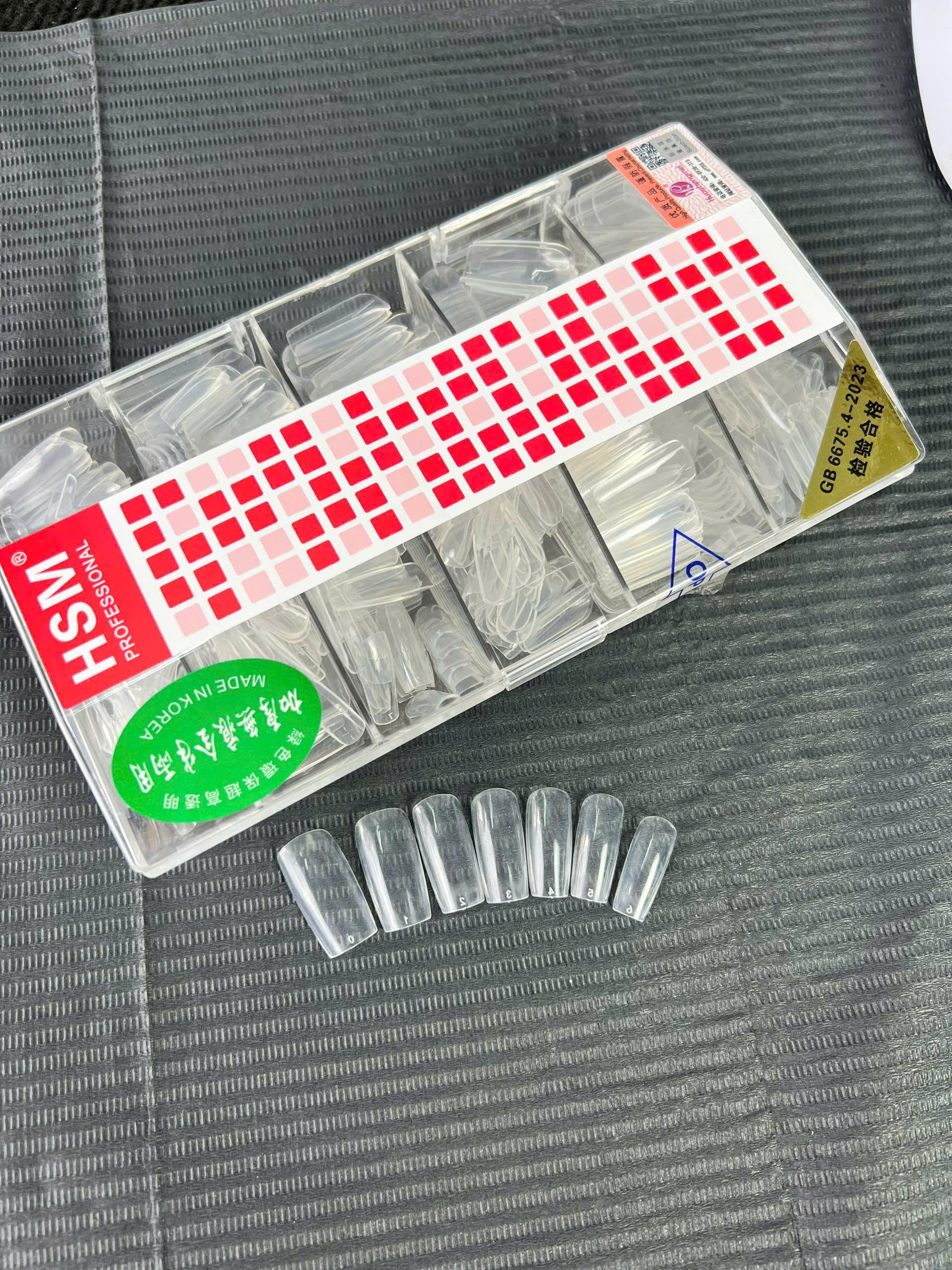 Hãy sở hữu ngay hộp 500 móng úp Tay HSM vuông trong trơn để dễ dàng tạo nên những bộ móng đẹp chuyên nghiệp, tự nhiên và bền lâu!