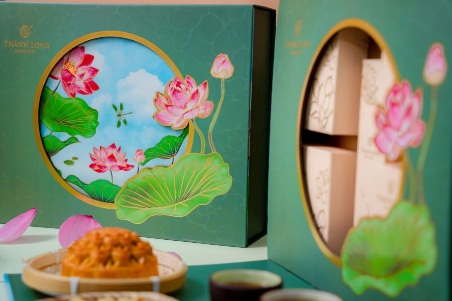 Hộp bánh trung thu 2 bánh 2 trứng 220g - Thành Long (440g) - Combo C: gồm Nhân hạt sen 2 trứng 220g Nhân khoai môn 2 trứng 220g - Combo D: gồm Nhân thập