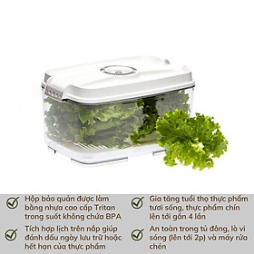 - Hộp bảo quản được làm bằng nhựa cao cấp Tritan trong suốt không chứa BPA - Gia tăng tuổi thọ thực phẩm tươi sống, thực phẩm chín lên tới gần 4 lần - Tích