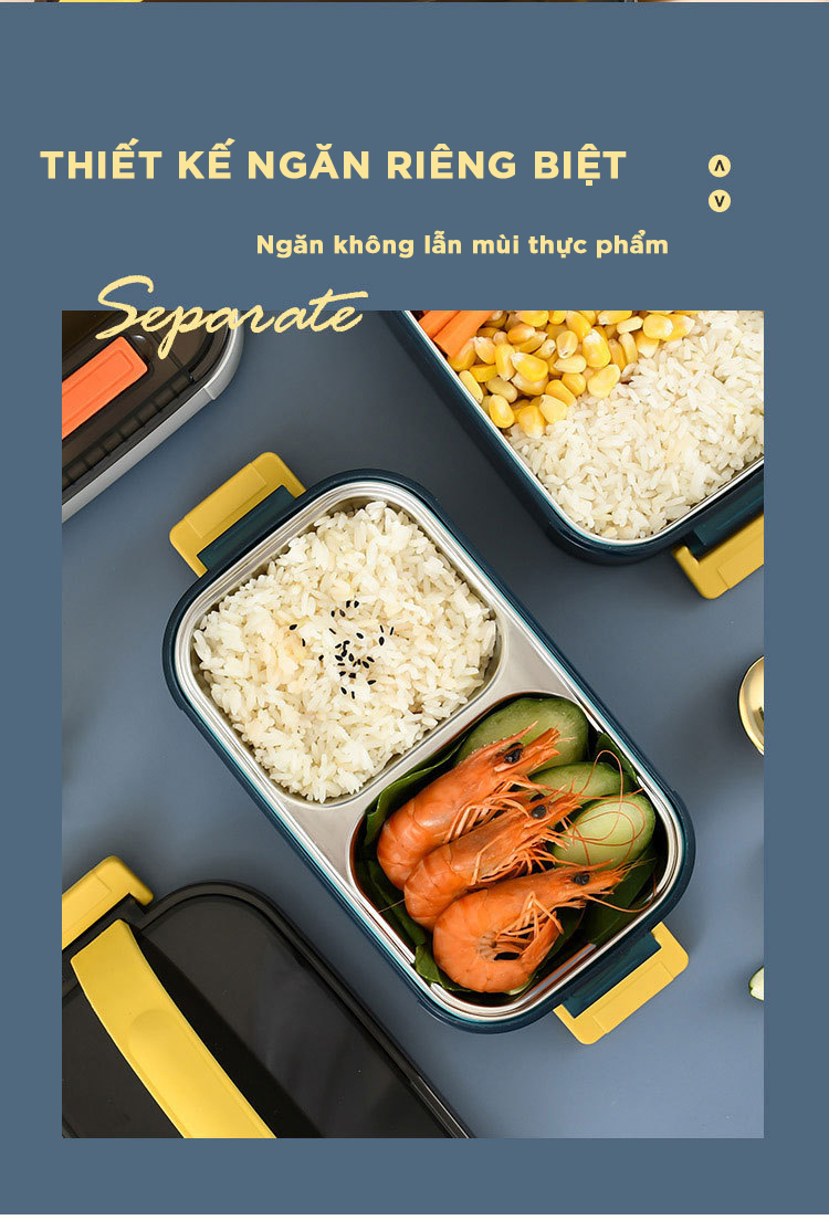 Hộp cơm giữ nhiệt văn phòng YESURE 1200ml Hai Tầng có ngăn Inox Tháo rời dễ dàng cho vào lò Vi Sóng Một số thông tin sản phẩm: _ Hộp cơm được làm chủ