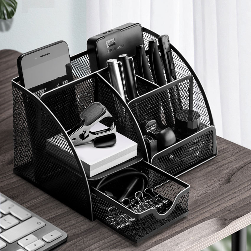 Hộp đựng bút để bàn dạng lưới thép thẩm mỹ, giúp bàn làm việc, bàn học gọn gàng, ngăn nắp.
