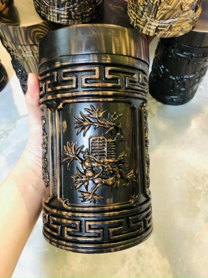 Mua tại TiktokHộp đựng trà ,chè được làm bằng chất liệu gỗ mun hoa ,tự nhiên 100% Kích thước cao 20 đk tròn 11cm _ Hộp đựng trà ,chè được trạm khắc nhiều hoa văn khác nhau vô cùng tỉ mỉ ,tinh sảo kỳ công ,Đi hầu hết tất cả mọi chi tiết góc ngách của hộp trè ,chà đều được ngọt tỉa chỉnh sửa hoàn toàn bằng tay thủ công .Đồng thời hộp đựng trà ,được kiểm định kỹ lưỡng như cho vào thẩm sấy cho gỗ khô kiệt .Mục đích trống dập nứt vênh mo mối mọt .Kết hợp vời trà nhám đánh giấy giáp nhiều lần cho sạch sẽ ,Sờ mát lạnh rồi cho vào phun lót làm bóng mờ ,để giữ lại mầu sắc vân gỗ tự nhiên ,Hộp đựng trà được làm và hoàn thiện do bàn tay khối óc tài hoa ,Từ những người thợ giàu kinh nghiệm cũng như tay nghề cao trong làng nghề truyền thống .
