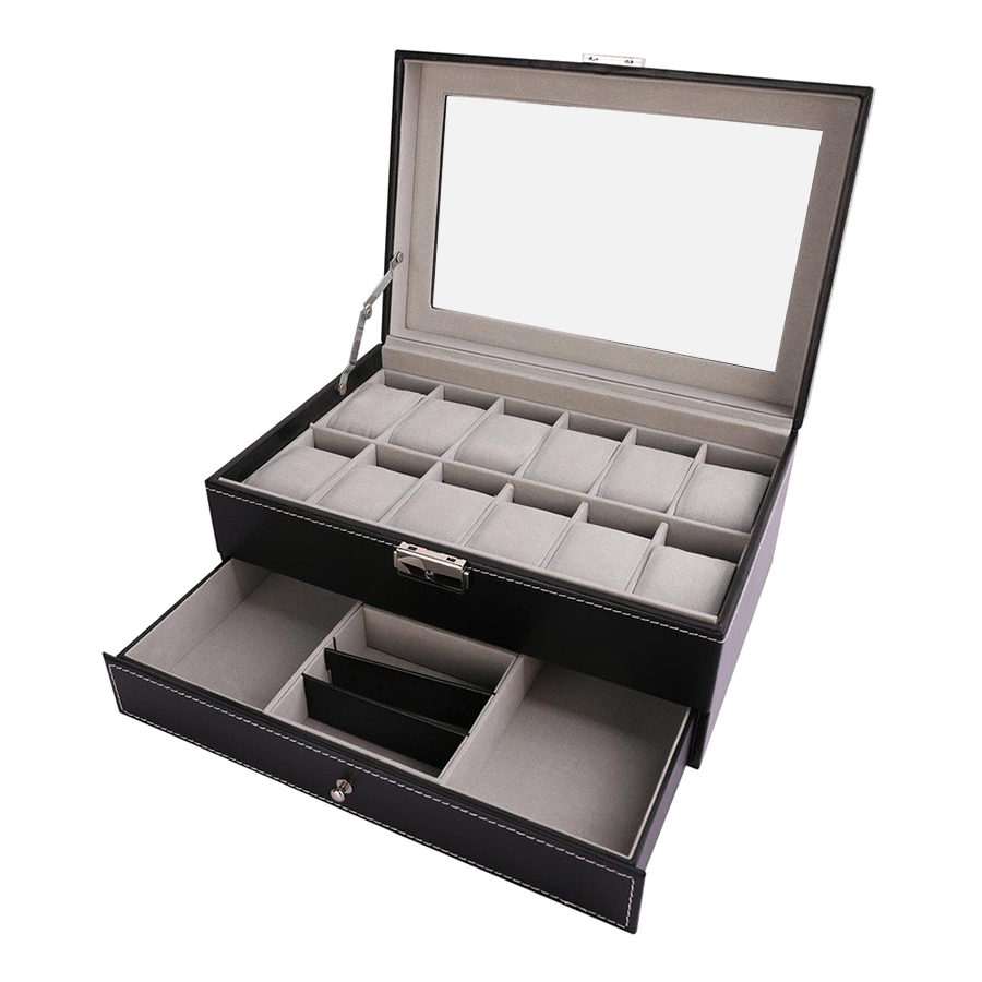 Hộp Đựng Đồng Hồ Và Trang Sức 2 Tầng - 33 x 20 x 13cm - Hệ thống, sắp xếp đồng hồ và trang sức hợp lý, không còn cảnh bừa bãi, thiếu ngăn nắp trong góc phụ kiện của bạn