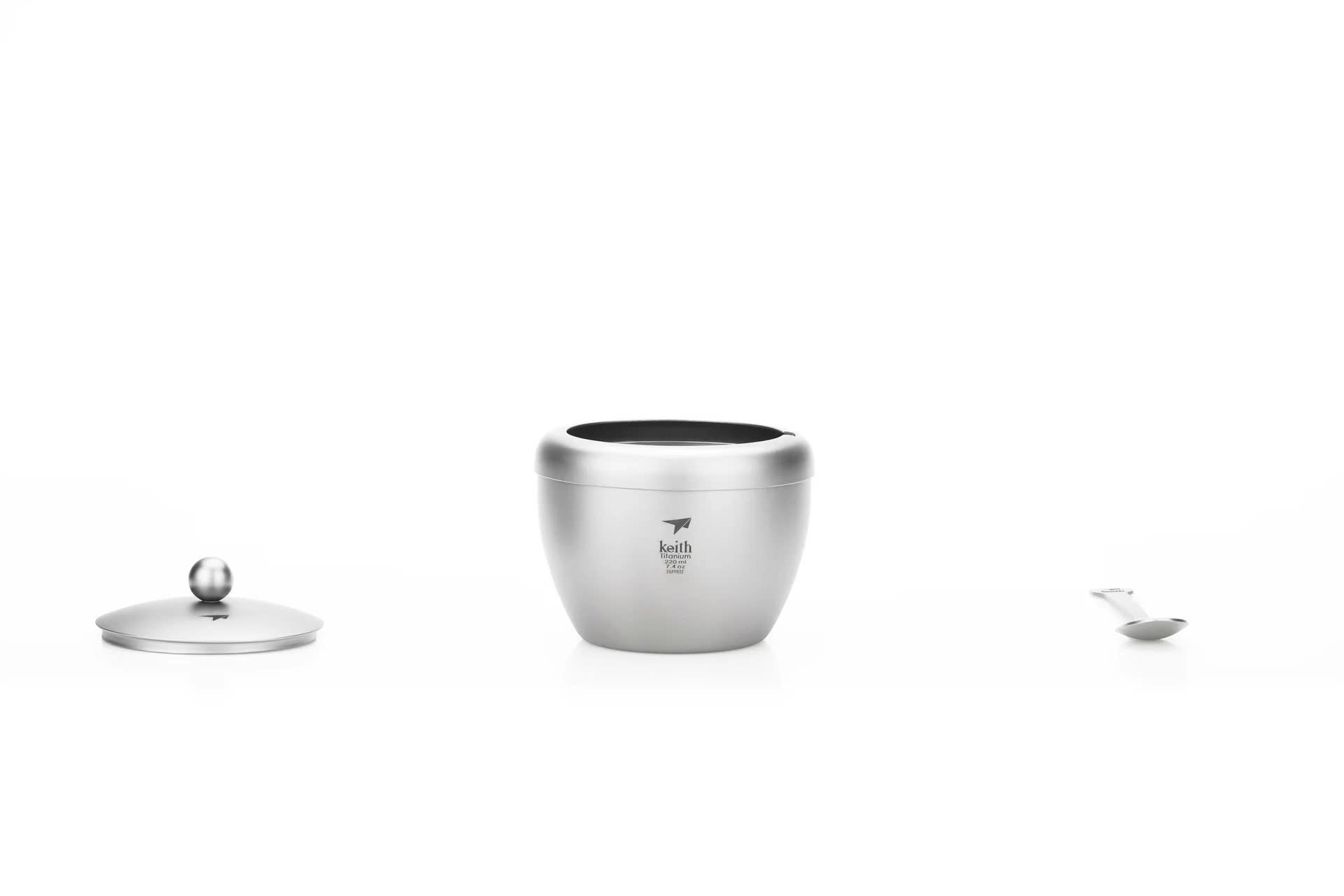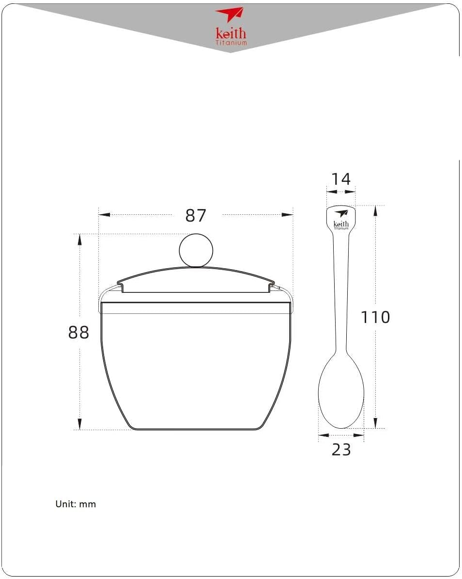 THÔNG TIN SẢN PHẨM:- Thương hiệu: Keith Titanium- Xuất xứ: Trung Quốc- Chất liệu: Titanium- Kích thước: Lọ đựng gia vị: Ø 87 × 85 mm Thìa: 23 × 110 mmĐược chế tác tinh xảo từ titan nhẹ và bền, Hũ...