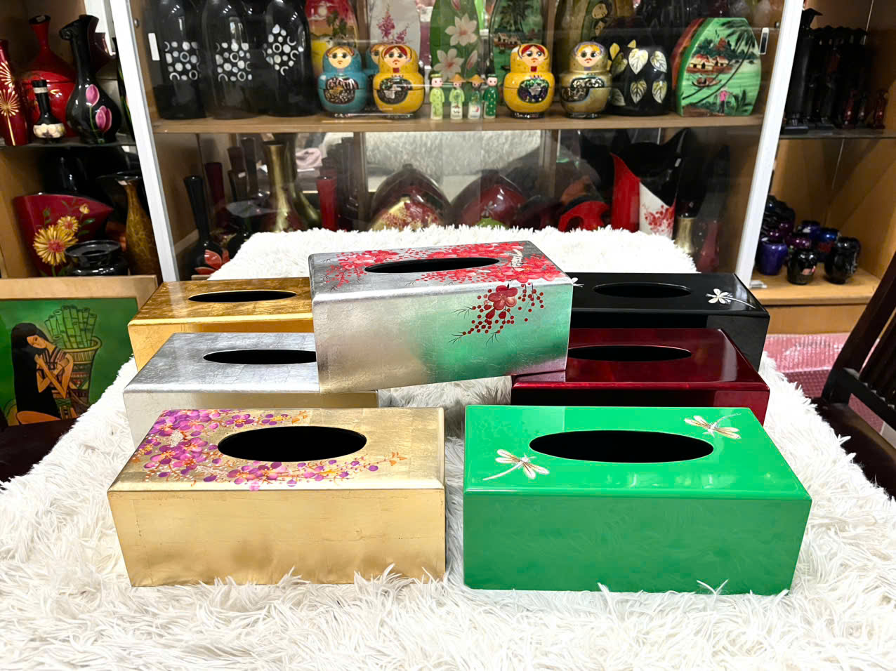 Hộp Đựng Khăn Giấy Sơn Mài Cao Cấp Họa Tiết Hoa Mận | Arst Of Lacquer