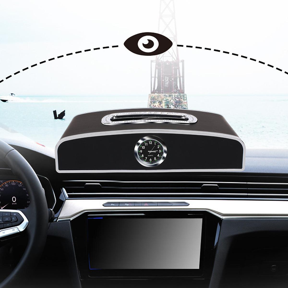 Hộp đựng khăn giấy tích hợp bảng số và đồng hồ đặt taplo ô tô tiện ích