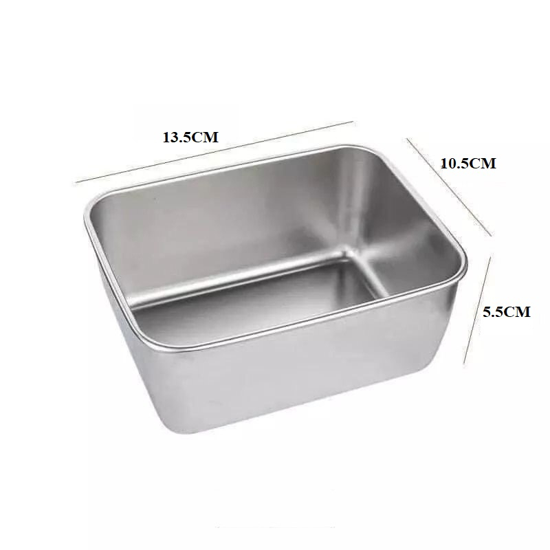 Hộp đựng thực phẩm được làm bằng chất liệu SUS 304 với kích thước được mô tả trong hình kèm theo nắp đậy bằng nhựa giúp cho việc bảo quản thực phẩm một cách hiệu quả.