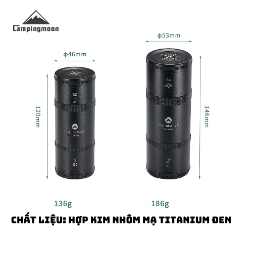 ✨Hộp đựng trà, cà phê hợp kim nhôm mạ titanium đen Campingmoon CC-50-BK/ CC-51-BK