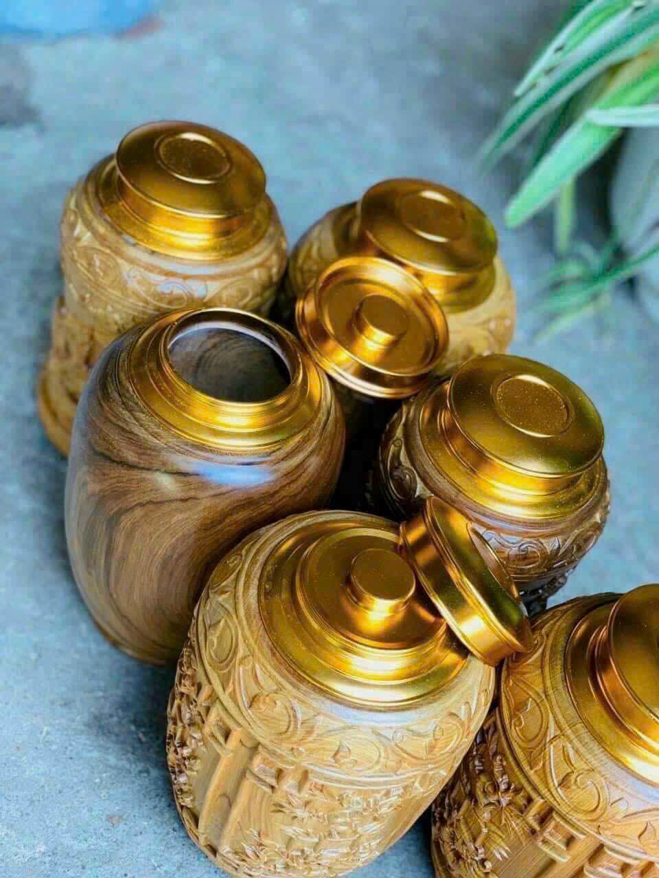 _ Hộp trà được chạm khắc nhiều hoa văn khác nhau ,nếu khách muốn được mẫu khắc tích gì ,hay để trơn cứ nhắn tin để nhà bán gửi tới chính xác mẫu muốn được .Hộp đựng trà được chế tác và hoàn thiện do bàn tay khối óc tài hoa .Từ những người thợ giàu kinh nghiệm cũng như tay nghề cao trong làng nghề truyền thống .