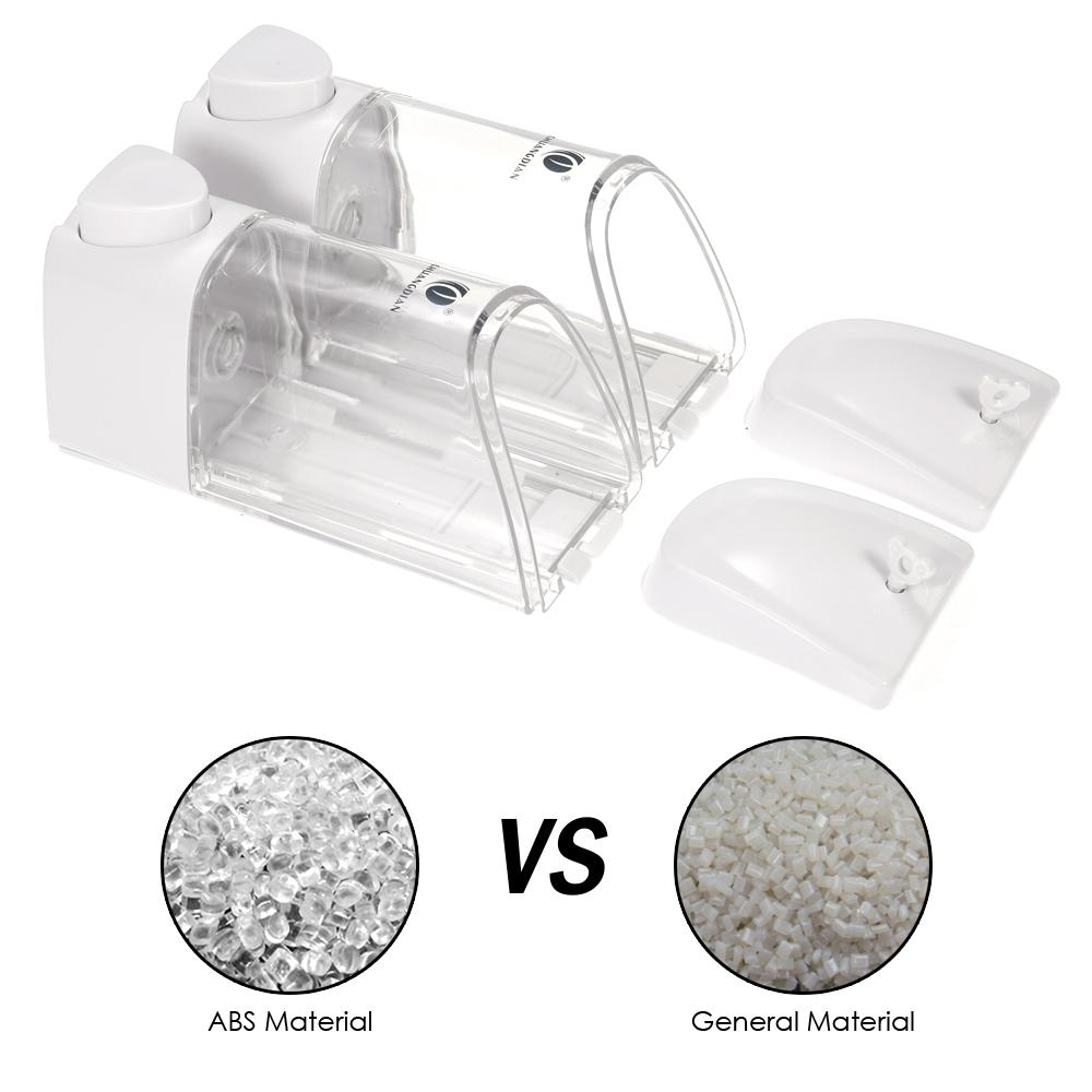 The double chamber liquid soap dispensers are made of new and good quality ABS, which is durable, compact and in sleek looking. The pump is designed for easy pumping with one hand. The separated outlet