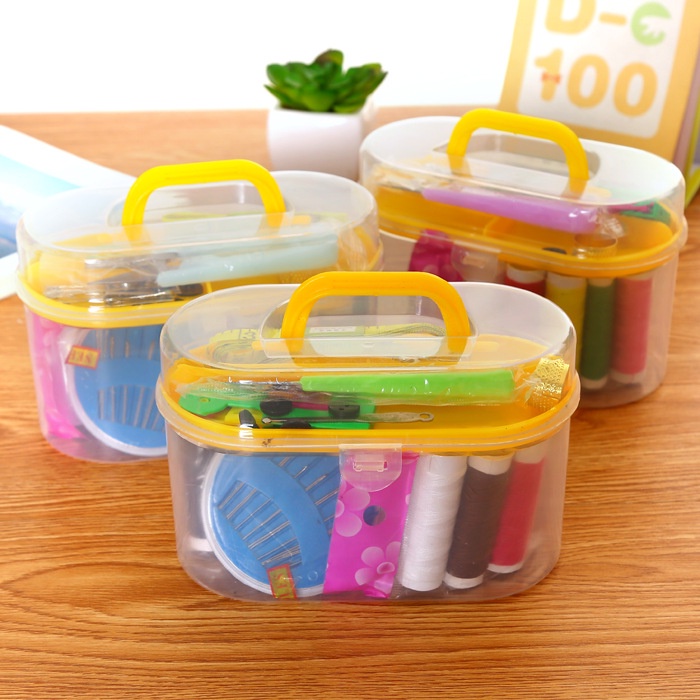 Bao gồm: 08 cuộn chỉ các màu. 01 hộp kim may. 01 kéo. 01 thước dây. 10 kim băng. 02 cúc áo. 01 nhẫn ấn kim...