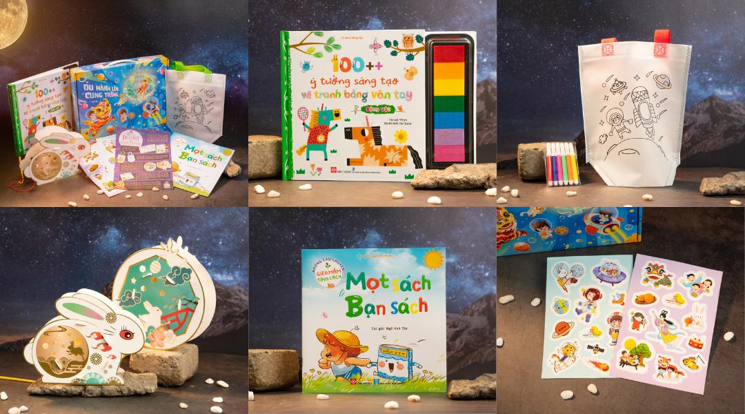 Năm nay, hãy cùng Đinh Tị Books tham gia chuyến du hành hết sức đặc biệt lên cung Trăng để thăm thú, khám phá “ngôi nhà” diệu kỳ này, cũng như lắng nghe câu chuyện xúc động về chị Hằng nhé! Để chuyến đi thêm phần hứng khởi, Đinh Tị Books xin gửi tới các bạn nhỏ chiếc va li du hành Trung thu thần kỳ này làm bạn đồng hành! Ngoài các cuốn sách hay cung cấp thật nhiều tri thức bổ ích cho hành trình diễn ra thú vị, trong va li còn chứa đựng những món quà hết sức tuyệt vời giúp các bạn thỏa sức trải nghiệm như đèn lồng hình thỏ ngọc, túi xách đựng đồ du hành tiện lợ đấy.