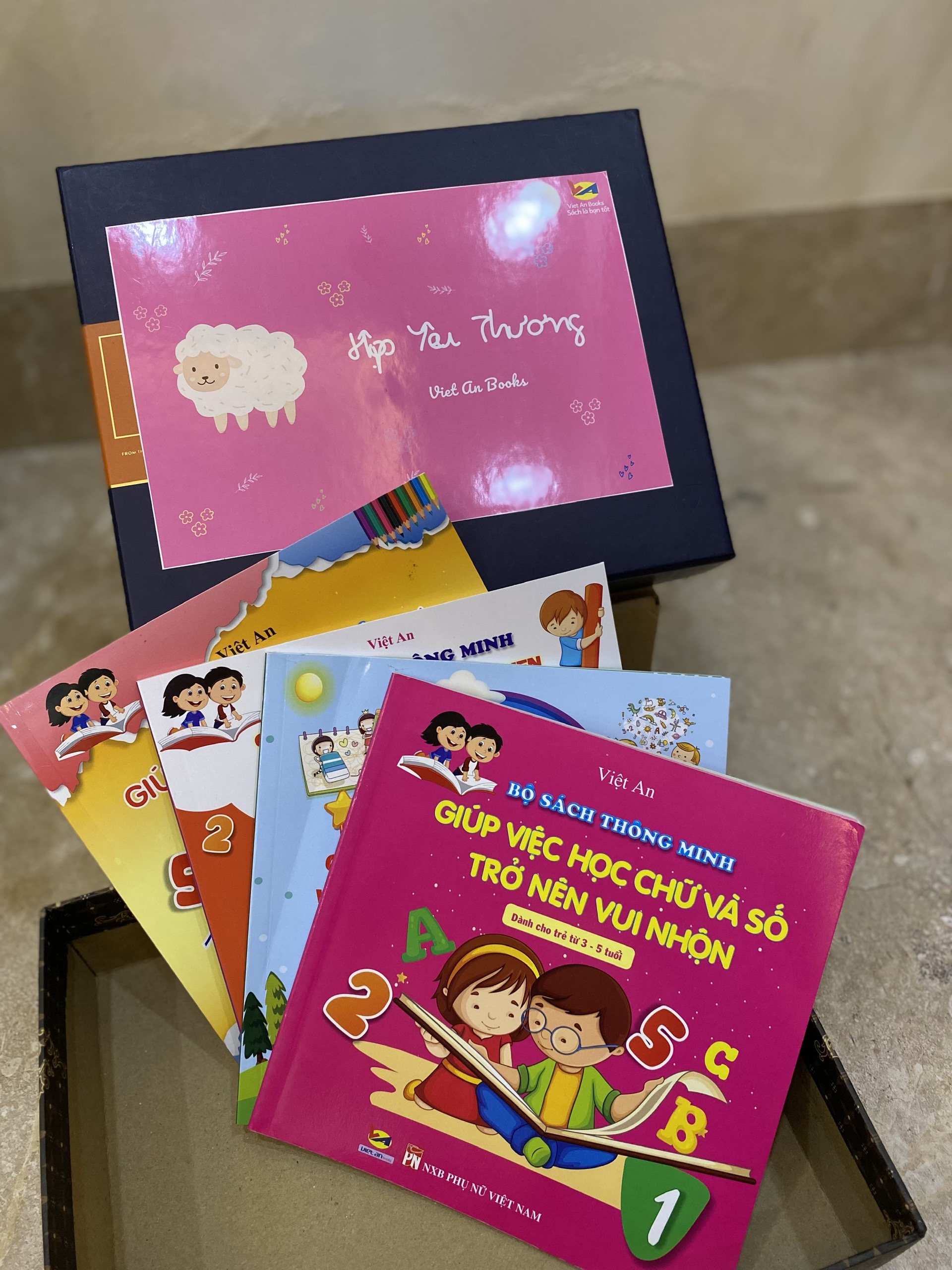 HỘP YÊU THƯƠNG 5 là hộp quà tặng tri thức dành cho bé từ 3 - 6 tuổi với set quà gồm có combo 04 cuốn sách rèn luyện tư duy - phát triển trí thông minh cho bé BỘ SÁCH THÔNG MINH (học và làm quen với chữ và số, với toán tư duy, với hình học) vô cùng hữu ích cho sự phát triển tư duy của bé, bộ Flashcard - thẻ chữ cái và chữ ghép đánh vần tiếng việt giúp bé tập ghép chữ, số và là nền tảng quan trọng cho các bé không còn bỡ ngỡ khi bước vào lớp 1.