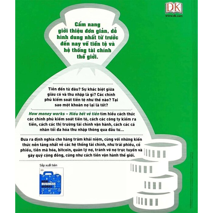 How money works - Hiểu hết về tiền tìm hiểu cách thức các chính phủ kiểm soát tiền tệ, cách các công ty kiếm ra tiền, cách các thị trường tài chính vận hành, cách các cá nhân tối đa hóa thu nhập thông qua đầu tư…