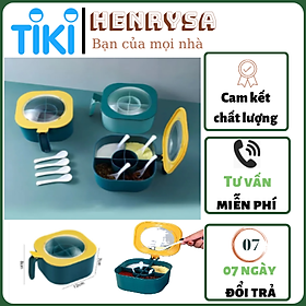 ✨HŨ ĐỰNG GIA VỊ 4 NGĂN CÓ NẮP ĐẬY kèm thìa cao cấp - Henrysa