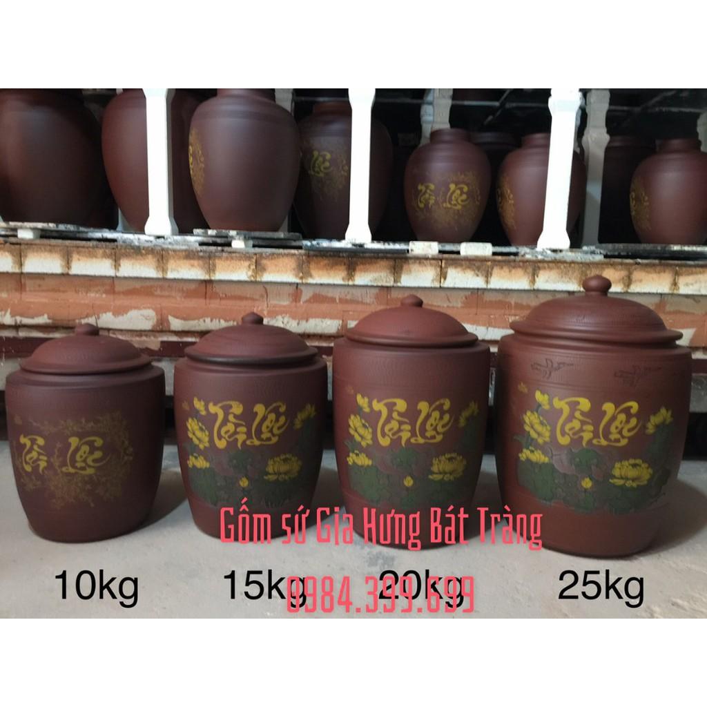 ✨Hũ sành đựng gạo vẽ sen 10kg gốm Gia Hưng Bát Tràng