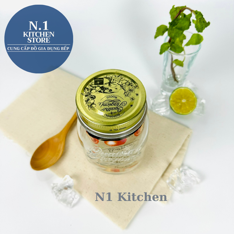 Thiết kế tiện lợi và sang trọng Nắp đậy màu vàng đồng nổi bật có in logo thiết kế dạng xoay giúp đậy kín và cách ly thực phẩm khỏi bụi bẩn. Phần thân hũ cách điệu với logo Quattro Stagioni in nổi vừa đẹp mắt vừa có công dụng chống trơn trượt và làm nổi bật sự tinh tế của chất liệu thủy tinh.