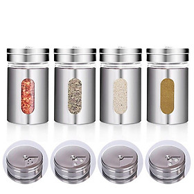 bộ hộp đựng gia vị thủy tinh nắp bằng inox 304 cao cấp