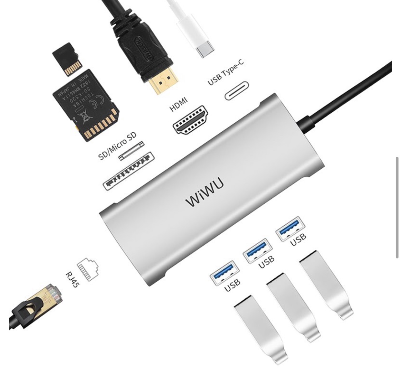 - Đầu chuyển USB Type C 8 in 1 Wiwu phù hợp với hầu hết tất cả các thiết bị như USB, ổ cứng gắn ngoài, dây cáp HDMI, tất cả các loại điện thoại giao tiếp bằng cổng USB…